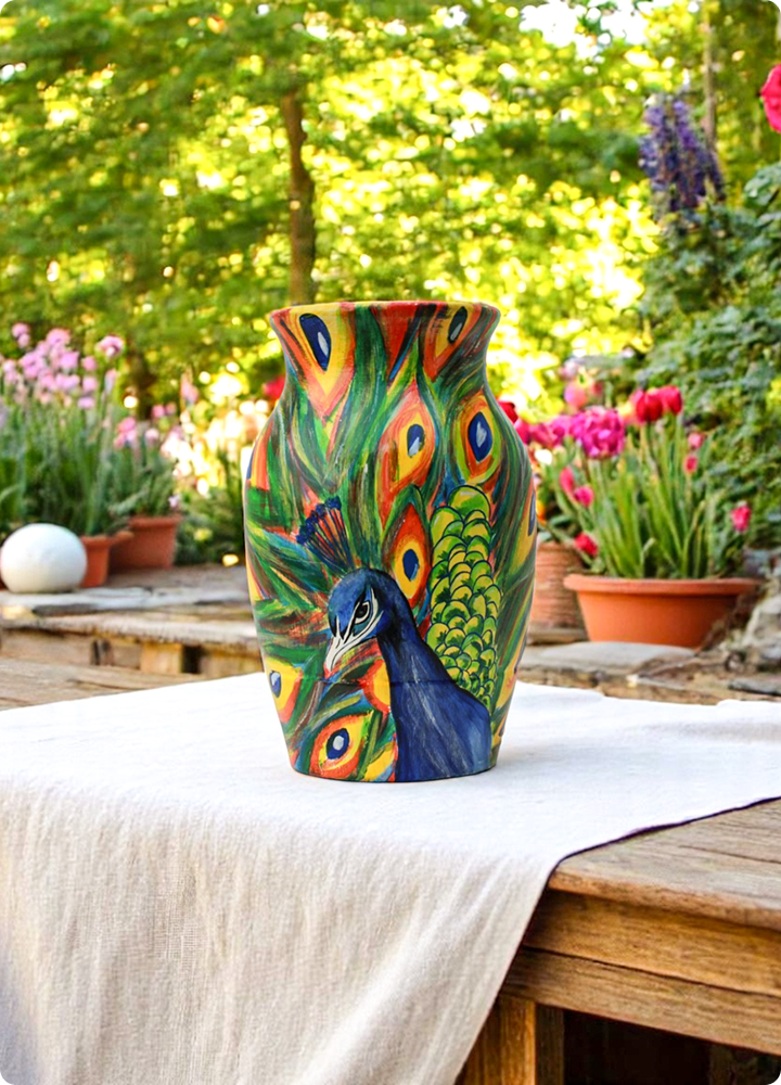 Hand-Painted Peacock Motif Vase
